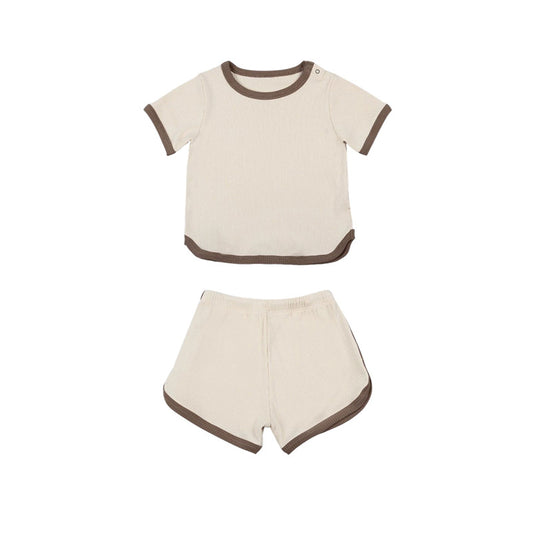 Summer Arrival Baby Kids Short Sleeves Solid Color T-Shirt And Shorts Casual Clothing Set