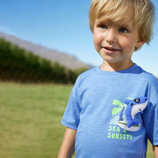 Summer Baby Kids Shark Cartoon Pattern T-shirt and Shorts Clothing Set for Boys