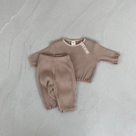 Spring and Autumn Kids Unisex Simple Solid Color Long Sleeves Top and Pants Knitted Clothing Set