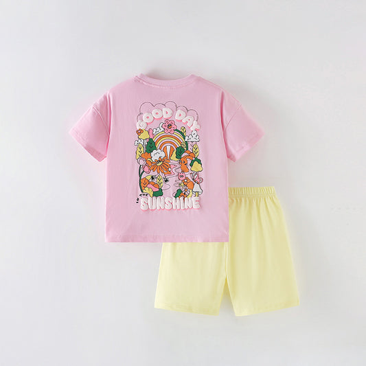 Arrival Summer Baby Kids Girls Cartoon Rabbits Pattern T-shirt and Shorts Clothing Set