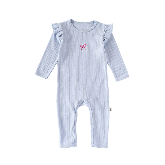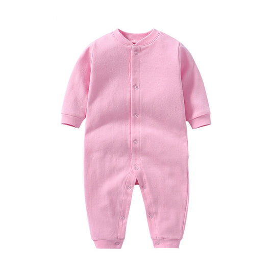 Baby Solid Color Single Breasted Design Long Sleeve Spring Rompers
