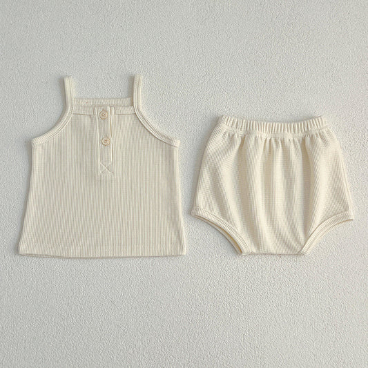 Summer Baby Kids Waffle Grid Sleeveless Vest And Bloomers Sets And Romper – Casual Matching Set