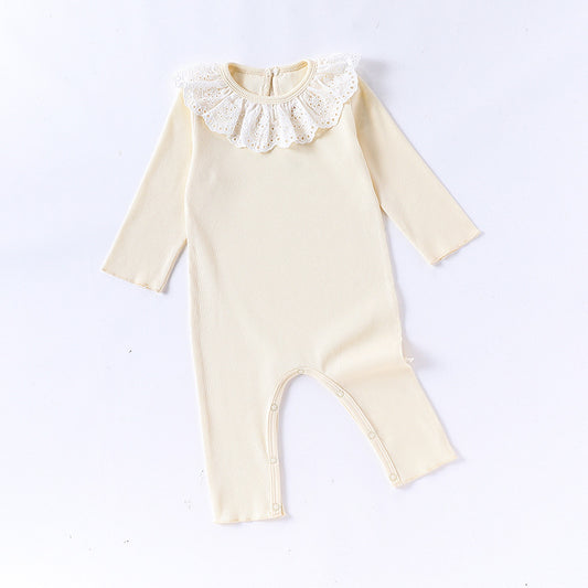 Spring Arrival Baby Girls Long Sleeves Flowers Hollow-out Pattern Collar Rompers