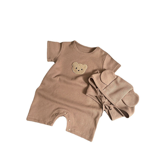Summer Arrival Baby Unisex Teddy Bear Pattern Short Sleeves Rompers
