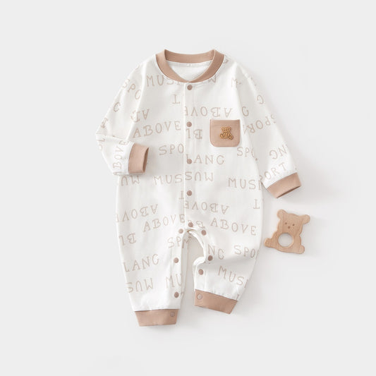 Spring Arrival Baby Unisex Long Sleeves Simple Pattern Rompers