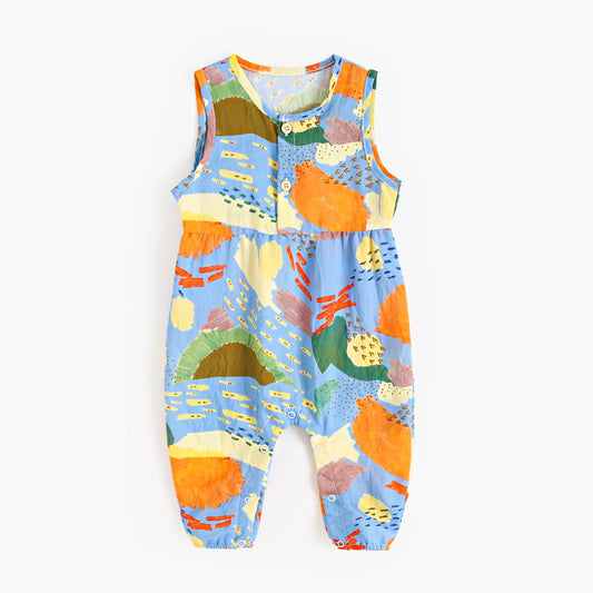 Summer Baby Girls Arrival Colorful Pattern Sleeveless V Neck Rompers