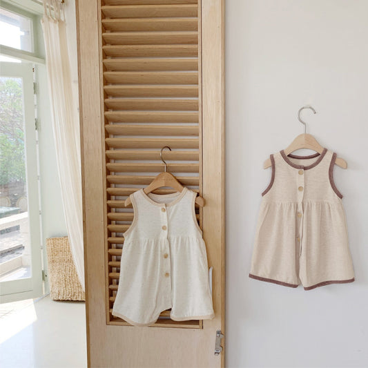 Summer Arrival Baby Unisex Simple Color Patchwork Sleeveless Single Breasted Rompers