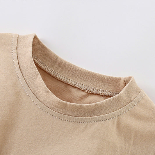 Autumn and Spring Arrival Baby Kids Unisex Long Sleeves Solid Color Casual Top