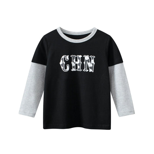 Autumn Baby Kids Boys Letters Print Long Sleeves Crew Neck Color Patchwork Top Shirt