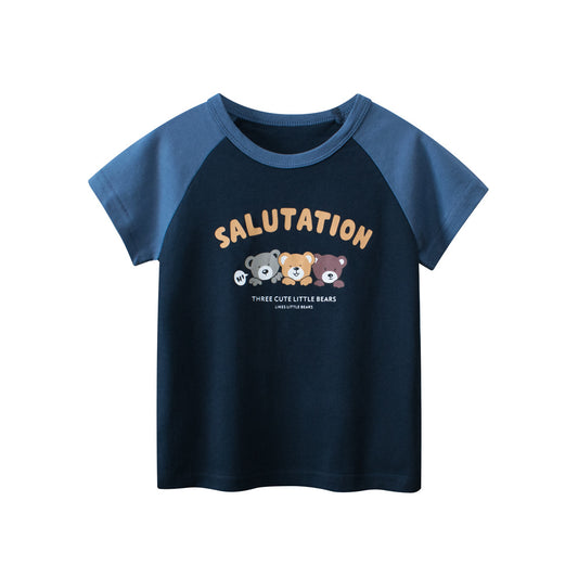 Summer Kids’ Teddy Cartoon and Letters Print T-shirt in European and American Style