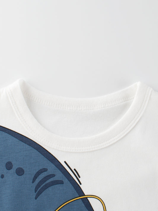 Boys’ Cartoon Shark Pattern T-Shirt In European And American Style