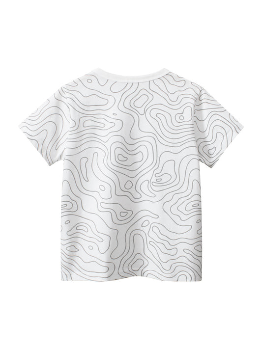 Boys’ Geometric Pattern Printed Casual T-shirt in European and American Style