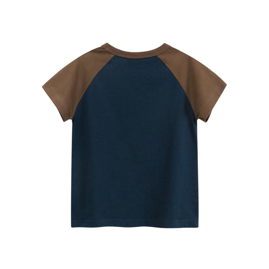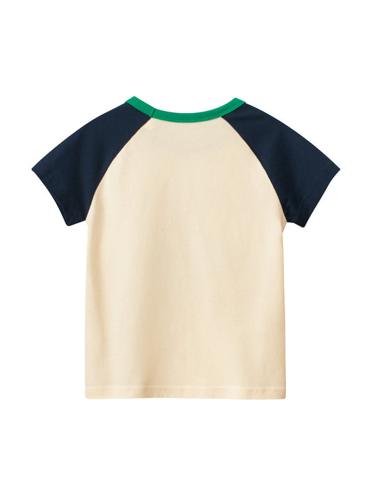 Summer Boys’ Letters Print Color Patchwork T-shirt in European and American Style