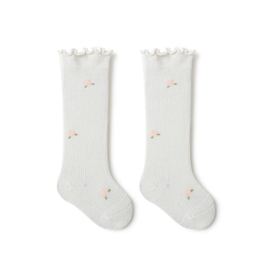 Baby Girl Solid Color Floral Embroidered Pattern Breathable Knee Socks