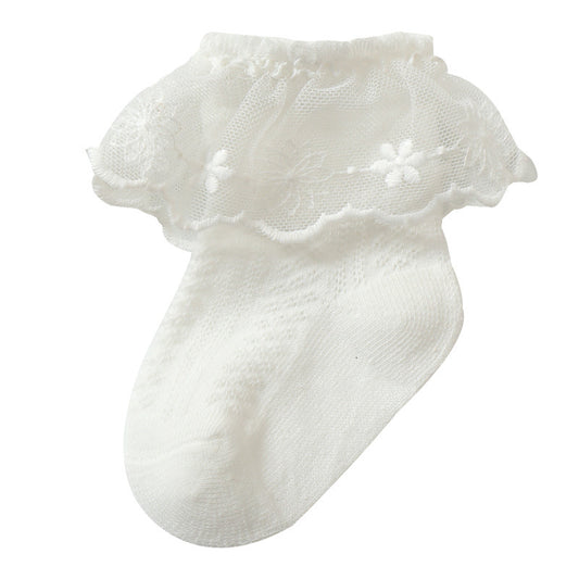 Baby Girl Solid Color Lace Mesh Design Princess Socks