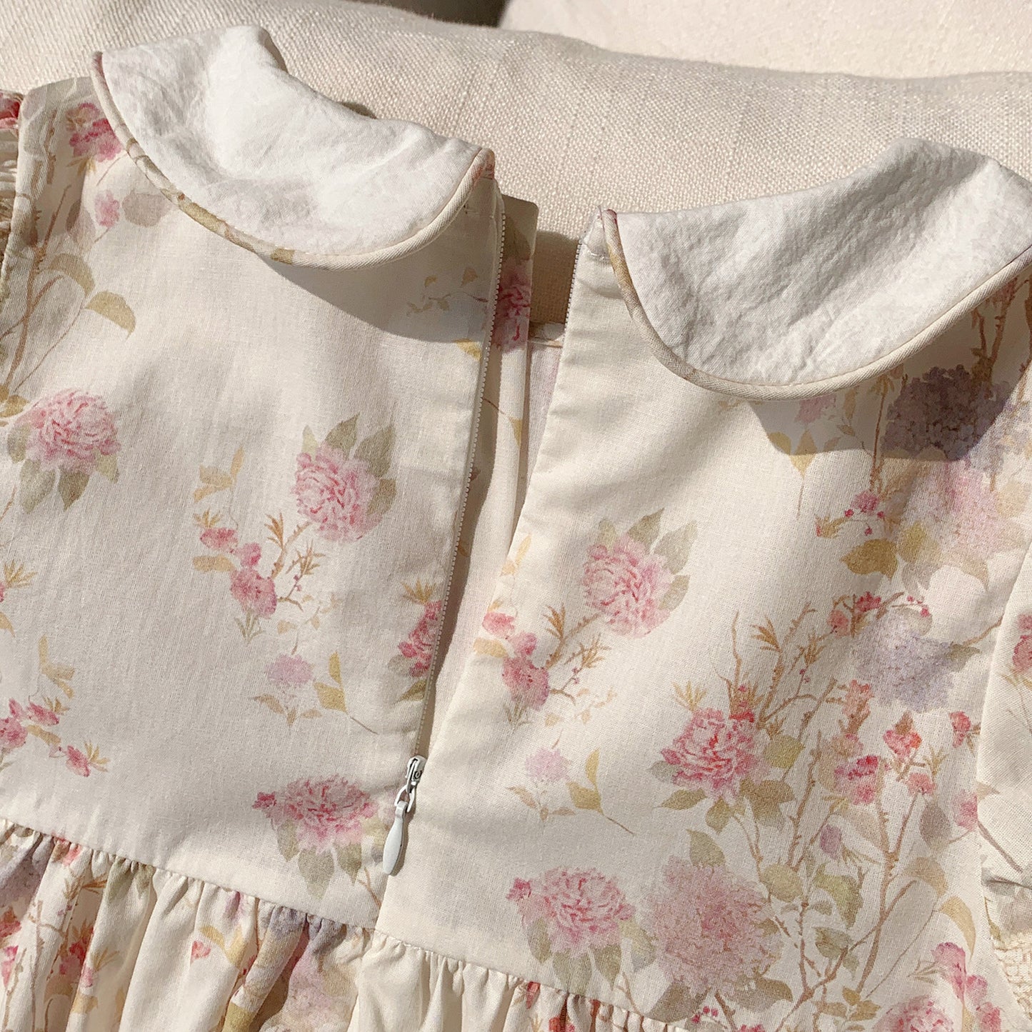 This elegant summer dress features a delicate floral pattern and short sleeves, perfectly complemented by a classic Peter Pan collar. Designed for stylish girls, it offers a refined look that balances comfort and charm, making it ideal for warm days and special occasions alike.