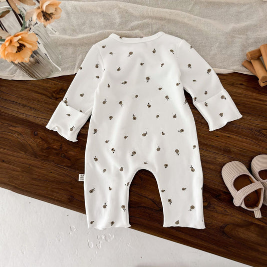 Autumn and Winter Arrival Baby Girls Long Sleeves Flowers Pattern Single Breasted Rompers