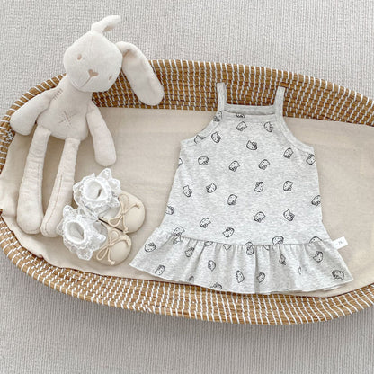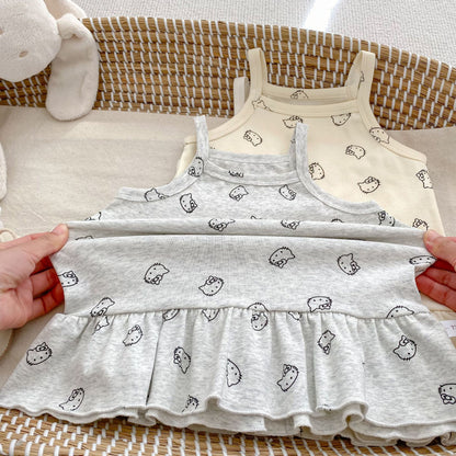 This sleeveless vest for baby girls features a charming cartoon pattern, perfect for warm summer days. Crafted with comfort in mind, it offers a lightweight and breathable fit that keeps your little one cool while adding a playful yet refined touch to their wardrobe. Ideal for everyday wear, this vest combines practicality with subtle style.