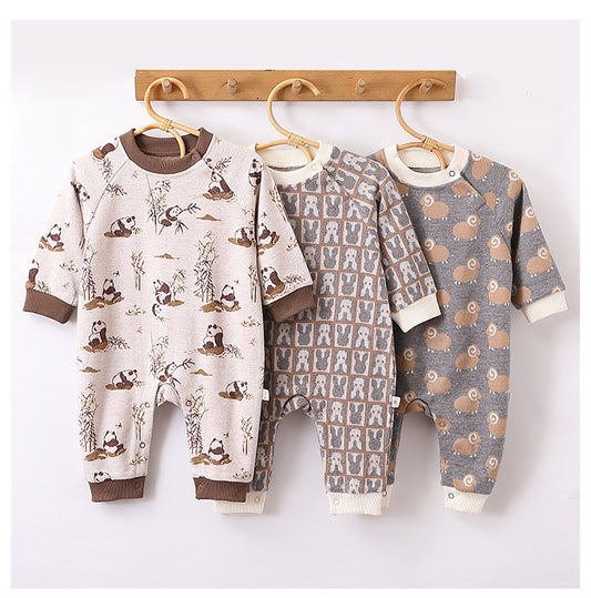 Autumn and Spring Arrival Baby Unisex Animals Pattern Long Sleeves Crew Neck Rompers