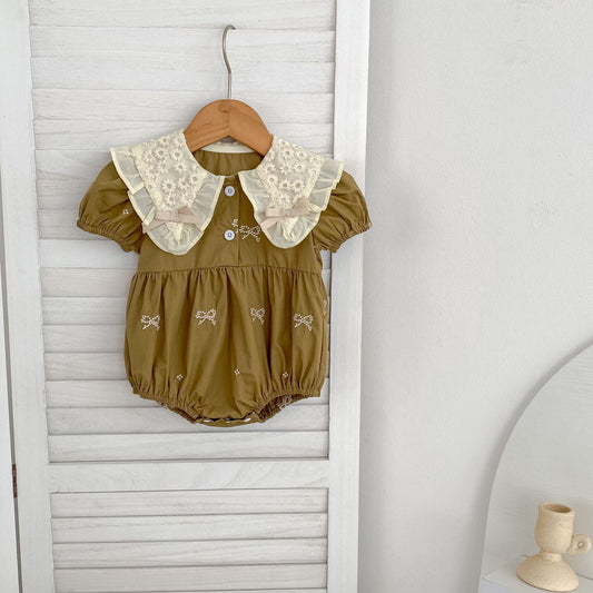 Summer Baby Girls French-style Butterfly-Bows Embroidery Pattern Short Sleeves Onesies