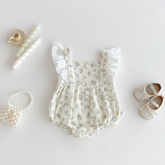 Summer Arrival Baby Girls Floral Pattern Fly Sleeves Onesies