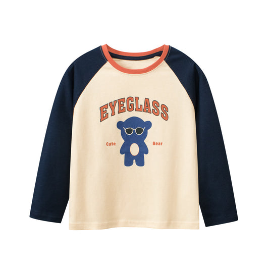 Arrival Autumn Kids’ Shy Teddy Cartoon Pattern Appliqué Embroidery Long Sleeves T-Shirt In European And American Style