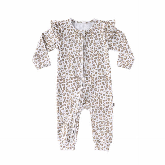 Autumn Arrival Baby Unisex Long Sleeves Cute Leopard Pattern Zip-up Rompers