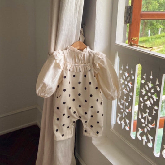 Spring Northern European Style Dots Print Crew Neck Comfy Onesies/Romper
