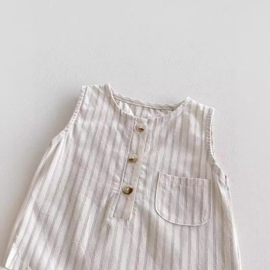 Design Summer Baby Kids Unisex Plain Simple Striped Pattern Crew Neck Sleeveless Romper