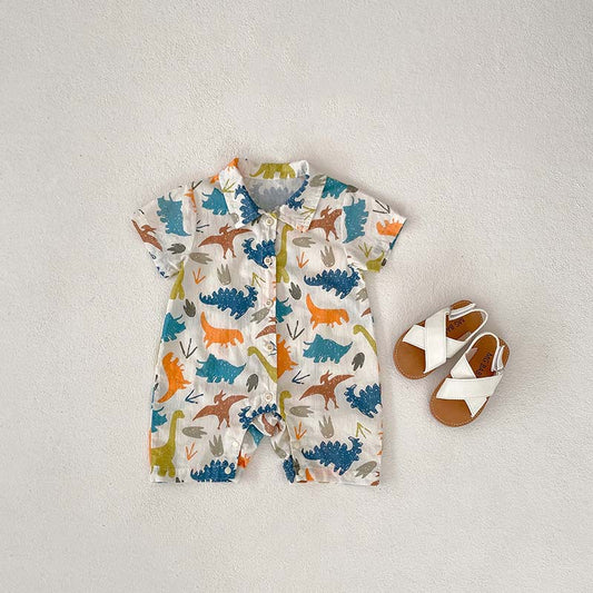 Design Summer Baby Kids Unisex Cartoon Animals Pattern Turn-Down Collar Short Sleeves Romper