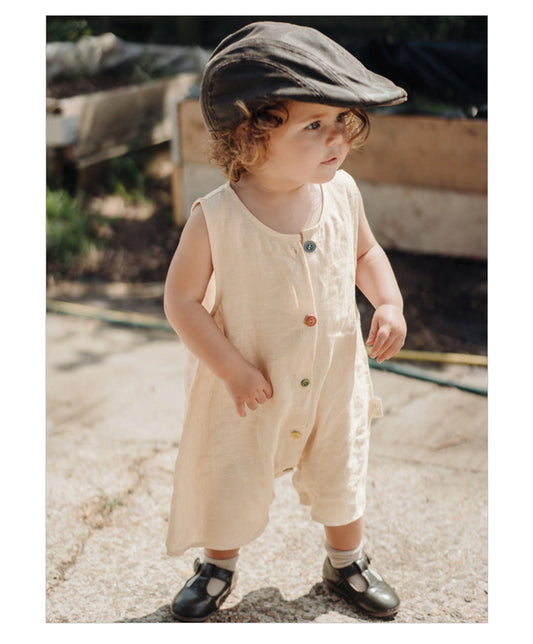 Summer Design Solid Color Crew Neck Single Breasted Colorful Button Sleeveless Rompers