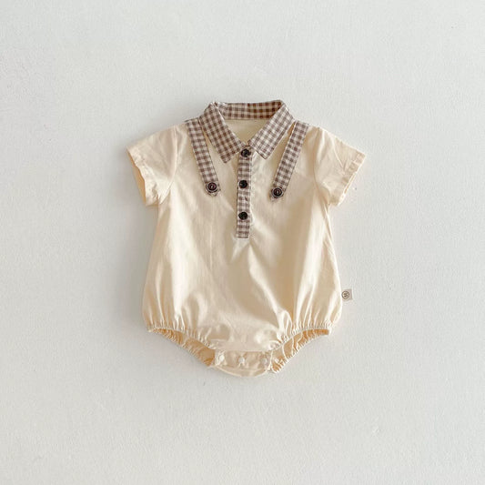 Summer Arrival Baby Unisex Casual Plaid Short Sleeves Color Patchwork Onesies or Rompers