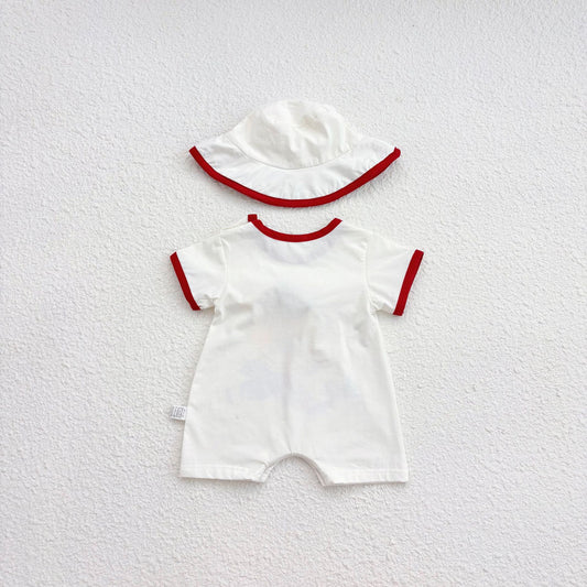 Summer Arrival Baby Unisex Joker Cartoon Pattern Short Sleeves Crew Neck Rompers with Hat