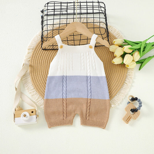 Baby Colorblock Pattern Sling Knitwear Summer Romper