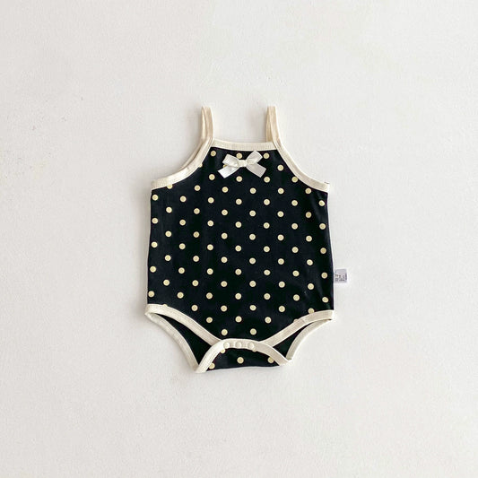 Summer Arrival Baby Girls Dots Pattern Butterfly-bow Decorated Strap bodysuit