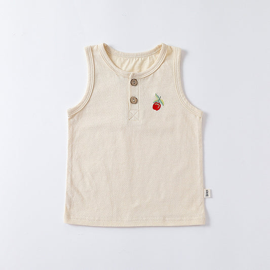 Summer Baby Kids Unisex Fruit Embroidered Logo Sleeveless Simple Vest And Bloomers