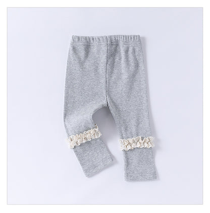 Children’s Spring Lace Trim Attached Breathable Pants for Girls – Home Trousers