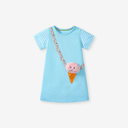 This charming short-sleeve dress features a playful ice-cream cartoon pattern, perfect for stylish girls embracing the summer season. Crafted for comfort and ease, it combines a light, breathable fabric with a fun design, making it an ideal choice for warm days and casual outings. Elevate your child's wardrobe with this delightful piece that balances youthful charm and refined style.