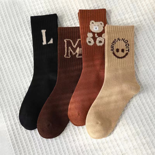 Baby Cartoon Pattern Mid-Tube Soft Cotton Fashion Socks 1 Bag=4 Pairs