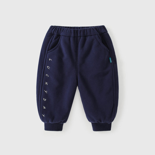 Winter Arrival Casual Baby Kids Boys Letters Embroidered Pattern Fleece-lined Pants