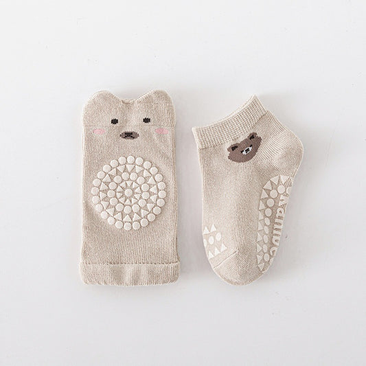Spring and Autumn Baby Unisex Breathable Cartoon Pattern Anti-slip Socks and Knee Sleeves Sets