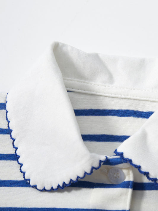 Baby Kids Girls Blue Striped Short Sleeves Polo Shirt