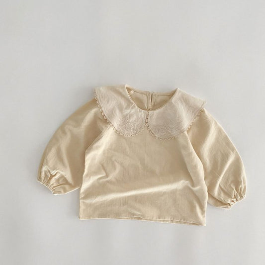 Baby Girl Solid Color Embroidered Pattern Doll-Neck Tops Shirt
