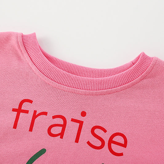 Baby Girl Strawberry Print Pattern Crewneck Terry Hoodies