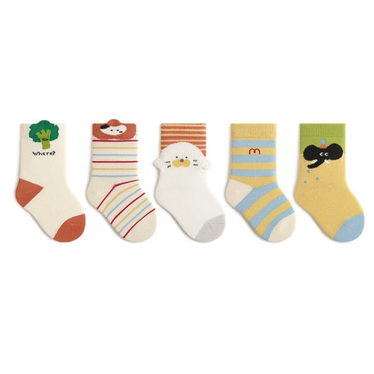 Autumn and Spring Baby Boys and Girls Cute Cartoon and Striped Pattern Socks 1 Lot=5-Pair Set
