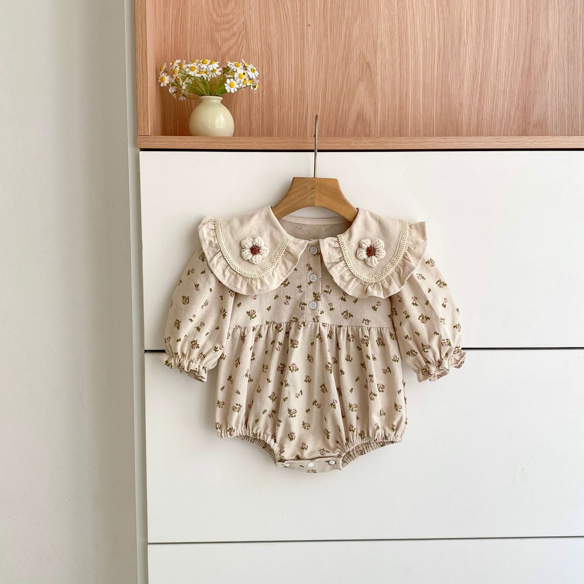 Arrival Spring and Autumn Flowers Pattern Baby Kids Girls Turn-down Collar Onesies and Dress – Princess Sister Matching Set