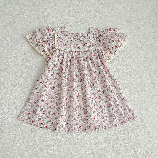 Summer Baby Girls Short Sleeves Square Neck Floral Pattern Dress And Onesie – Princess Sister Matching Set