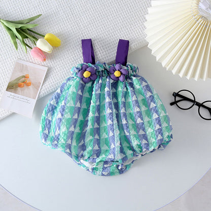 Baby Girl Style Flower Patched Design Sling bodysuit