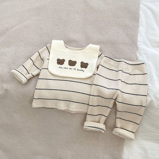 Striped Pattern Pajamas With Removable Drool Towel Sets