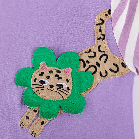 Spring Grils Kids Long Sleeve Cartoon Animals Embroidery Logo Patchwork Dress